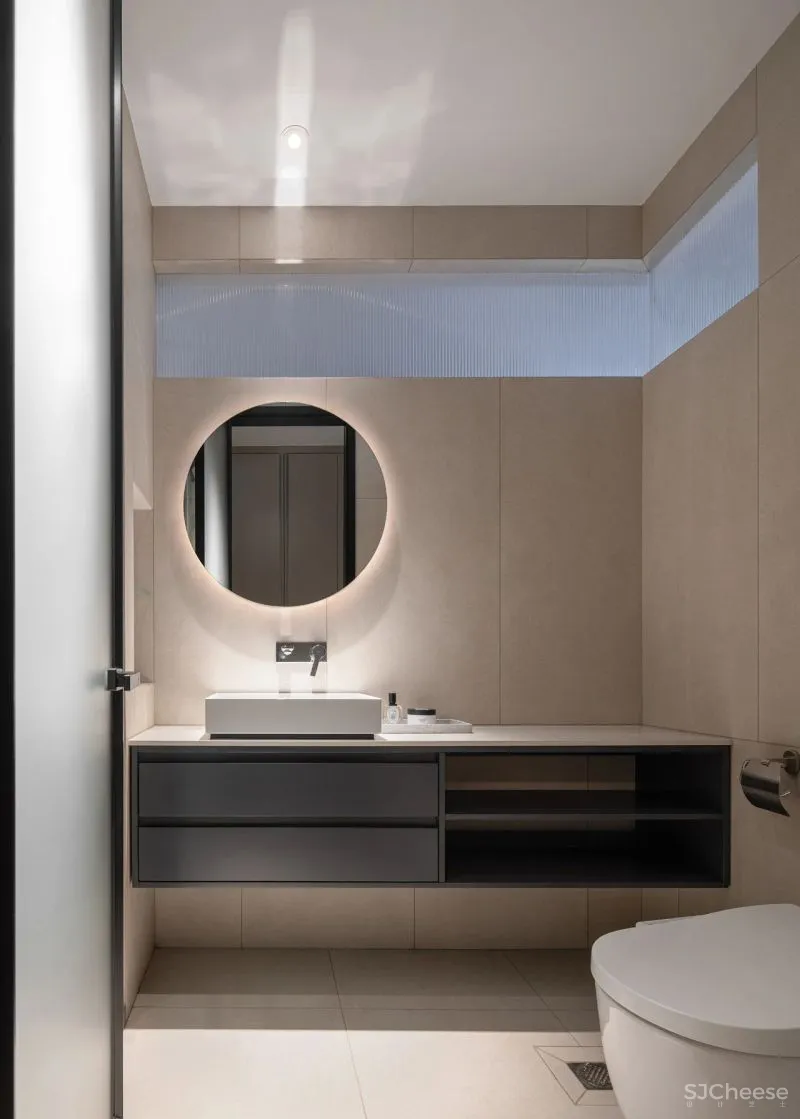 次卧内卫通过墙体上方的高窗,引入外部的光线,颇具趣味性。