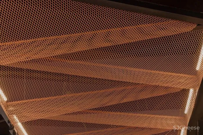 整个钻食食集被可循环再利用的橙色“钻石”网状天花覆盖,不同大小和品类的铺位,统一在这一秩序之下,使空间获得热烈的气氛,激起人们的食欲的同时。也在传达「生态时尚」的理念,鼓励环保、节约。 引导人们去探索发现,与心爱的人分享!