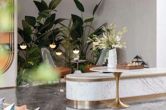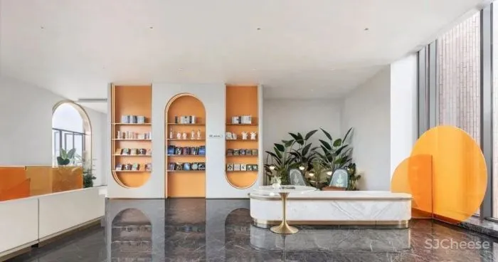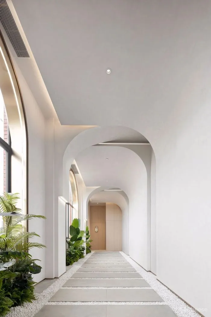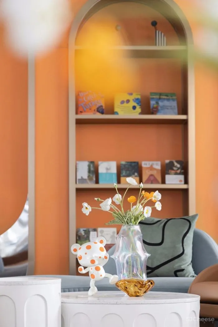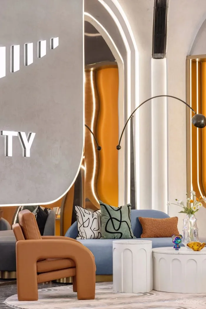 人与艺术与生活的对话,在空间中尽可能加入弧形的微笑元素,肌理感、艺术陈设、灯光装置加上轻音乐,模糊空间与时间之间的界线,放松舒适的生活馆氛围,成为了城市及周边社区人文精神和日常休憩娱乐的归属地。