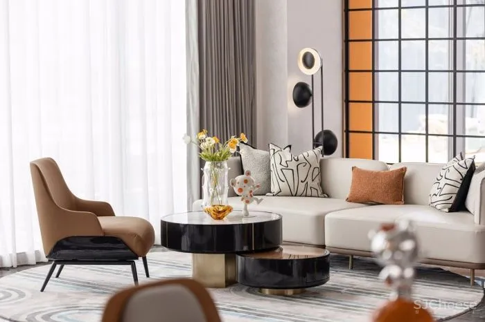 灵动优雅的曲线与巧妙的色彩充斥整个空间的秩序,艺术品与家居陈列遵循生活的体验,透露精致与舒适的温馨家居生活感。在艺术的氛围中享受愉悦的交流,神游其中,怡然自得。