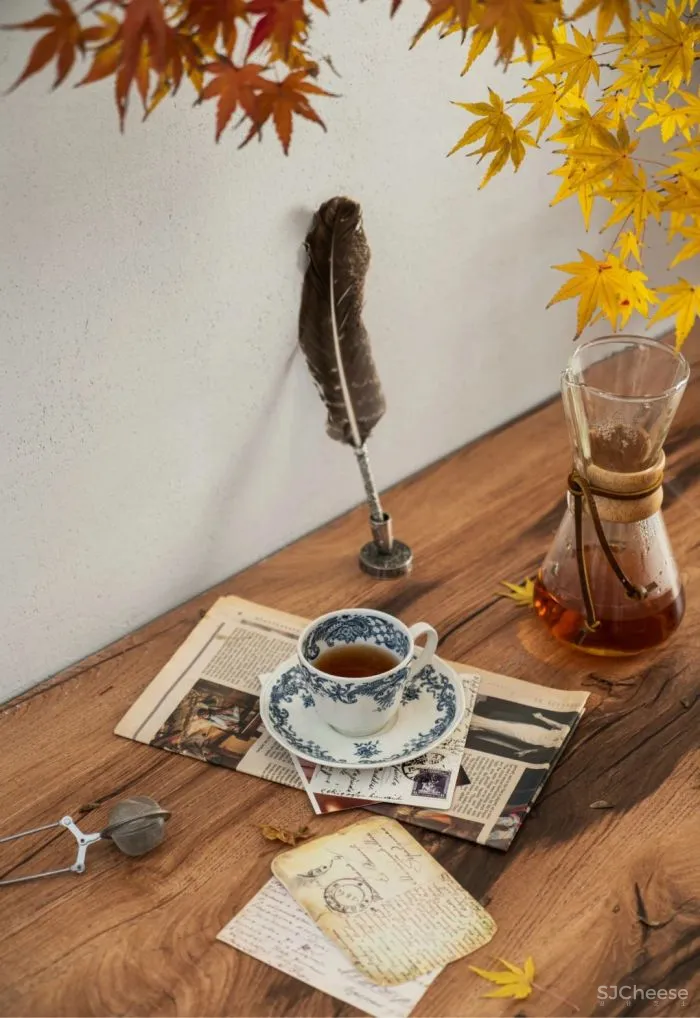 设计师在楼下捡来的枫叶, 随意插在玻璃杯里,雅致又上镜。