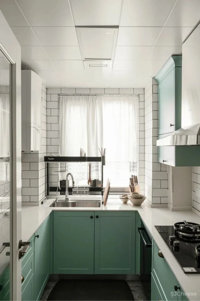 中厨位于进门的右手边, 屋主之前刷ins种草了这个颜色。