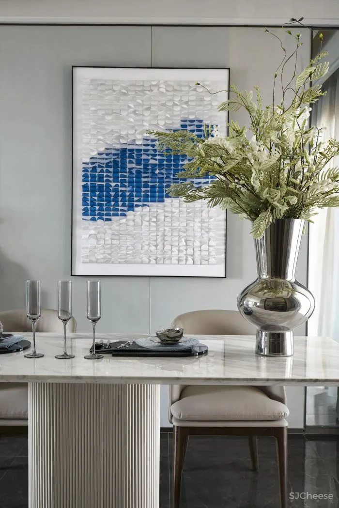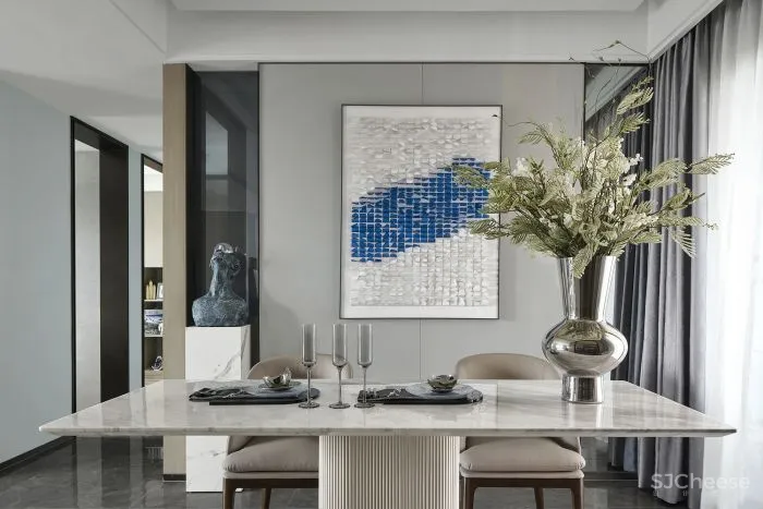 以删繁就简的笔触诠释理性纯粹的生活方式,贴合当代城市菁英群体的审美趣味,唤起居者与空间情绪的共鸣。