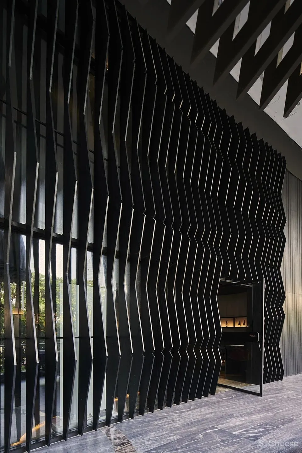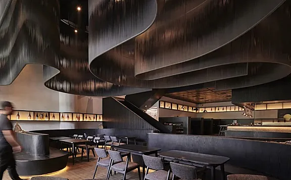 ▼自由流动的悬挂屏风成为整个餐厅引人注目的焦点