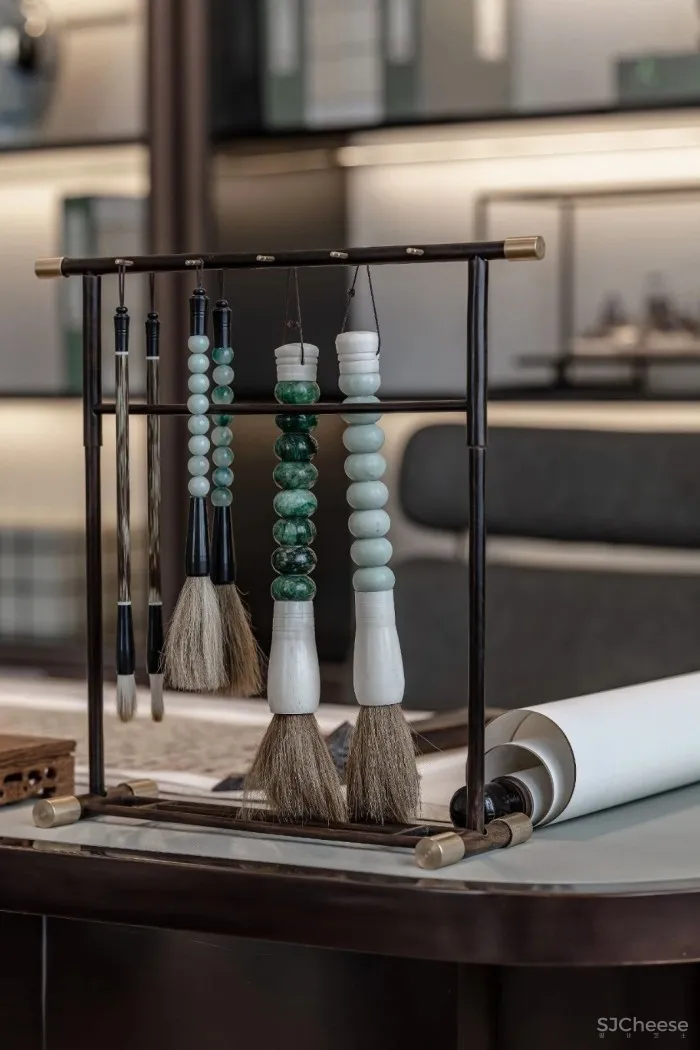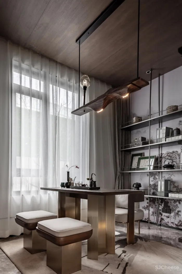 将现代东方的元素,与整个设计一脉相承,淡淡的水墨,满古韵的装饰在深沉中显露人生的智慧。大雅至善,灵动毓秀,新中式元素在工艺、材料的搭配中,演绎出一种富有内涵的东方质感。