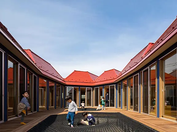 大多数日本的幼儿园设计整体都偏素雅,相比起我们常见的幼儿园显得有些“冷清”,然而最近在日本千叶县新建的一所幼儿园就让人眼前一亮。