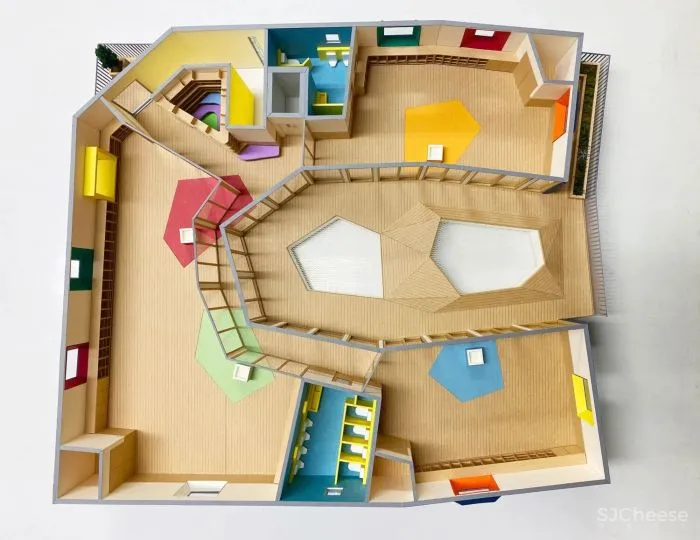 建筑团队尽可能在每个房间使用不一样的颜色,目的在于帮助孩子们认识、接受不同的个性,因为与别人不一样,是再正常不过的事情。