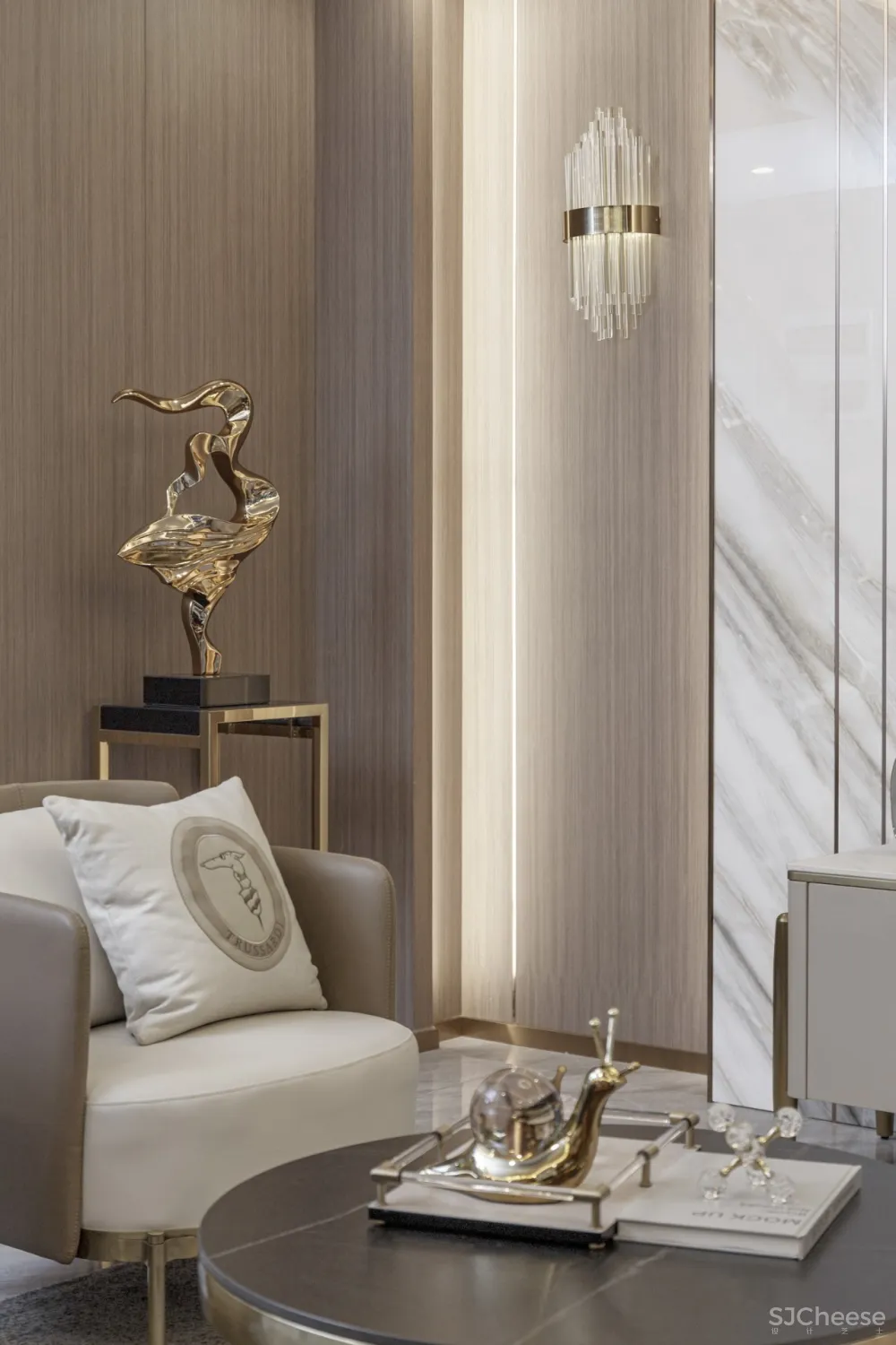 灯的垂直下坠感,优雅中带着一丝干脆利落,不仅增加了视觉高度,更是提升了空间氛围的低调奢华。