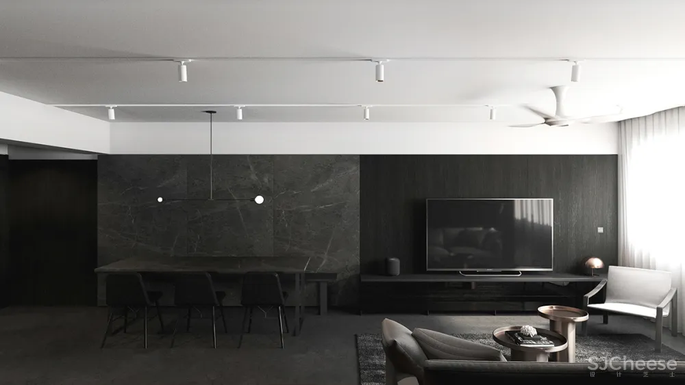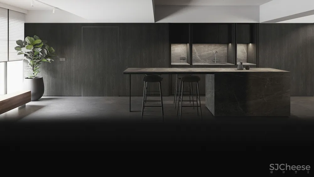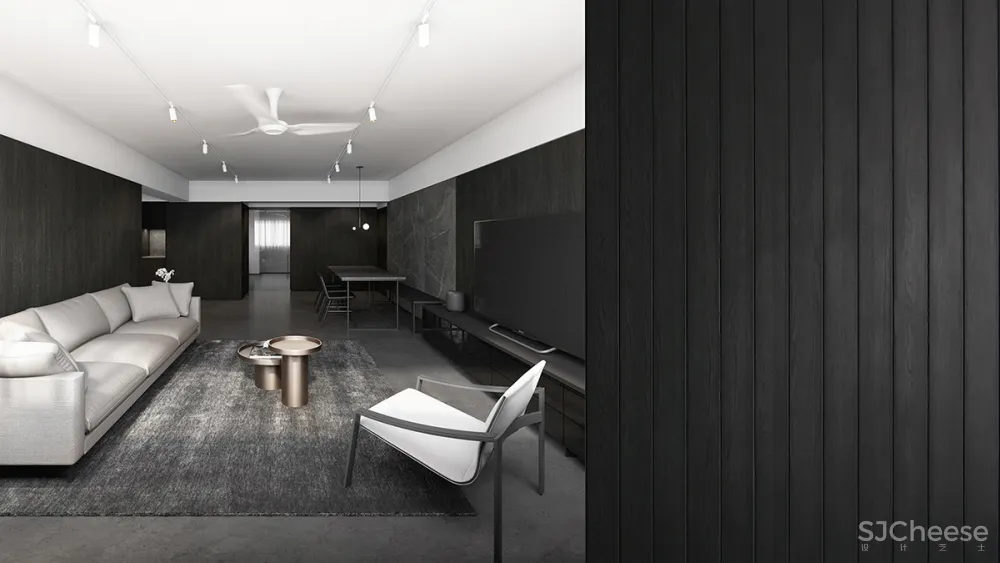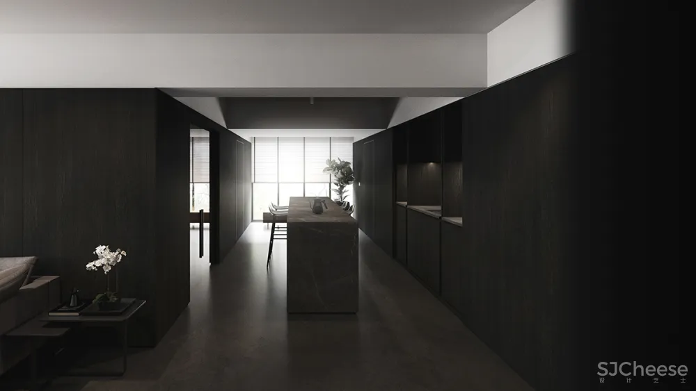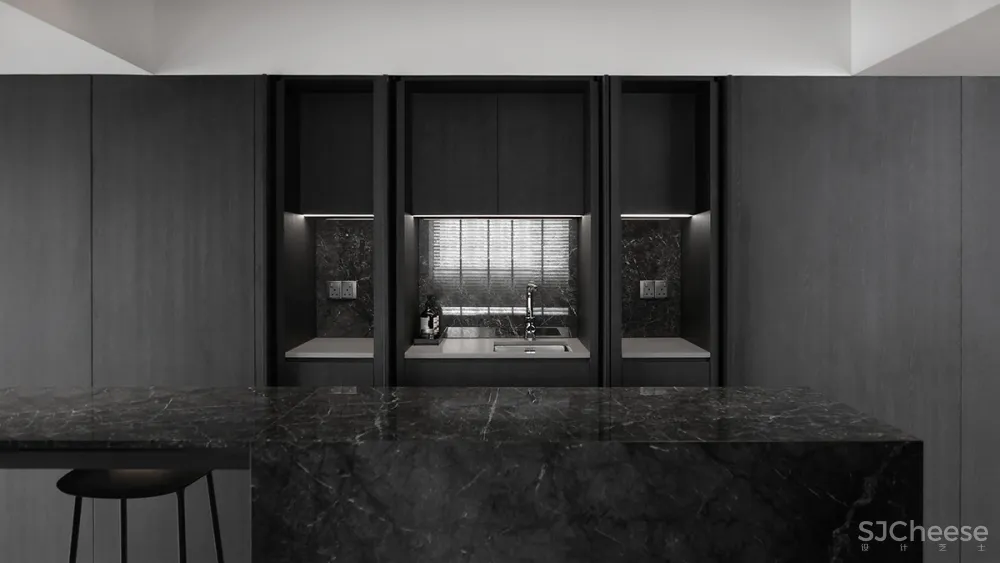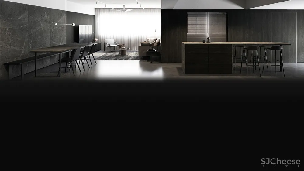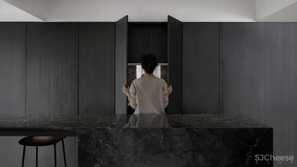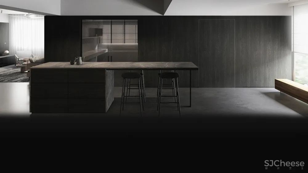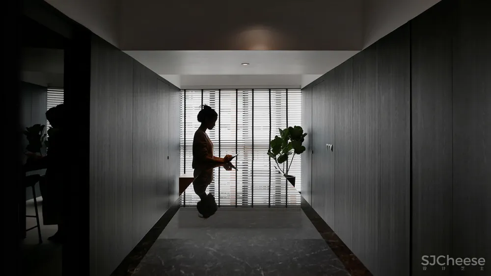 这个公共住宅项目展示了一种时髦的男性风格,用中性色与深色纹理的对比来沐浴,创造出复杂的感觉。窗户的照明,一边是长长的、诱人的木制长凳,人工照明,给人一种强烈的阳刚之气,被木质纹理的色调所温暖。