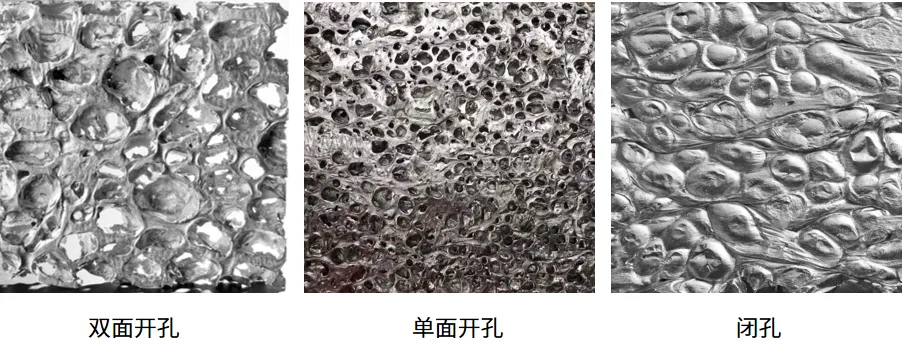 泡沫铝可以分为大孔径、中孔径、小孔径3种规格,每种规格又分为单面开孔、双面开孔,以及自然铸造状态(双面闭合),多样化的规格可以为设计师多元化设计提供更多的发挥空间。