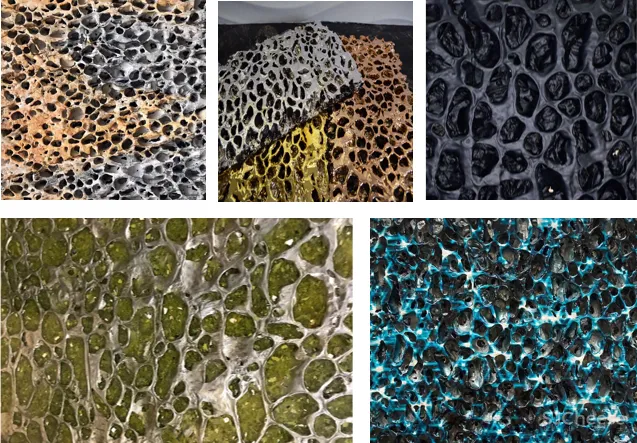 并且设计师可以根据其设计理念去为泡沫铝板喷绘颜色,可以和大理石、树脂等材料灌注融合,碰撞出艺术的火花。