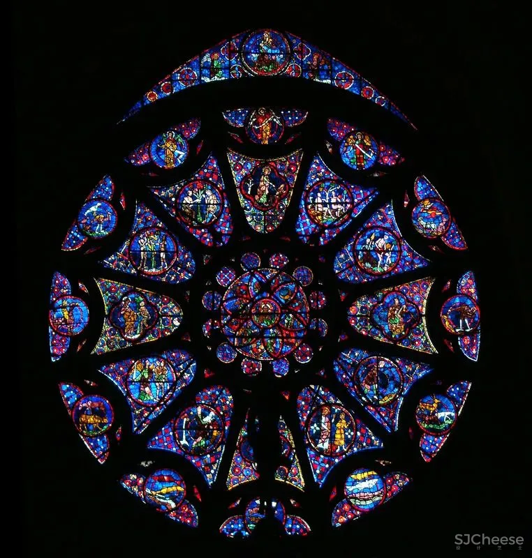 兰斯大教堂北侧耳堂的玫瑰花窗,描绘了创世纪的故事