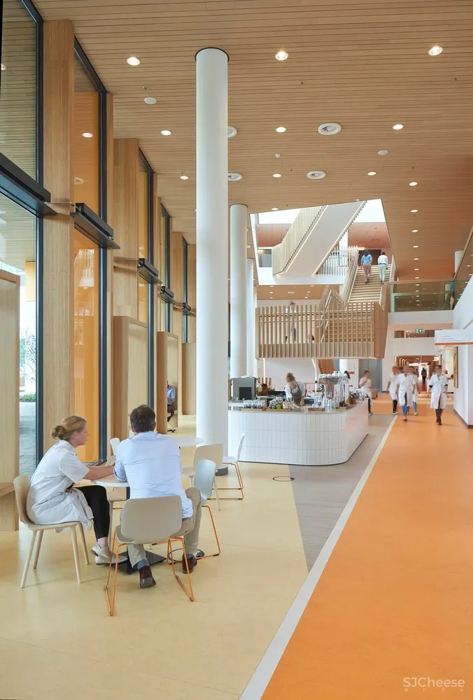 玛西玛公主小儿肿瘤中心(Princess Máxima Centre for Child Oncology)由 LIAG 设计,汇聚了护理和研究领域最尖端的专业知识。玛西玛公主中心占地45,000平方米,是全欧洲最大的、独一无二的儿童肿瘤中心。玛西玛公主小儿肿瘤中心希望治愈每一位患有癌症的儿童,并为他们提供最佳的生活。这栋具有独特室内和室外设计的建筑能够帮助医院实现这一目标。建筑的室内和室外之间有着自然的联系,这种联系也存在于患病的儿童和研究之间。建筑的主流线为儿童、父母、医生、护士和研究人员组成了休息区和会议区。