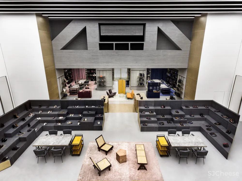 “入口被设计成一个画廊空间,旋转展示新作品 – 与社区联系,为Bally提供一个窗口,”该品牌补充道。“这是我们剧院的门厅。”