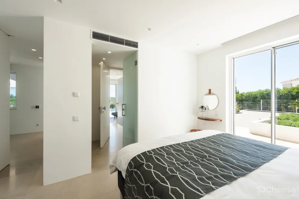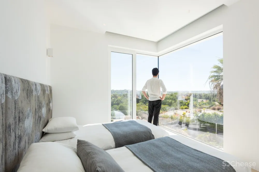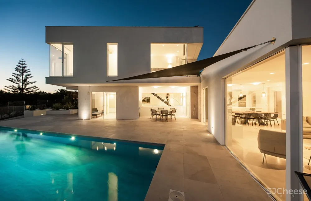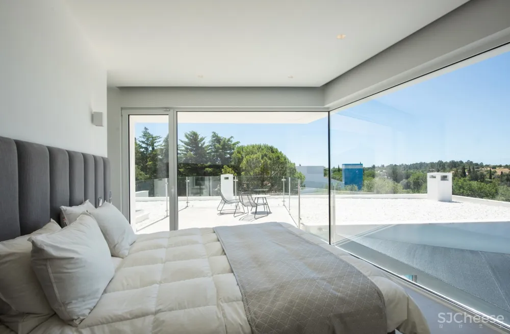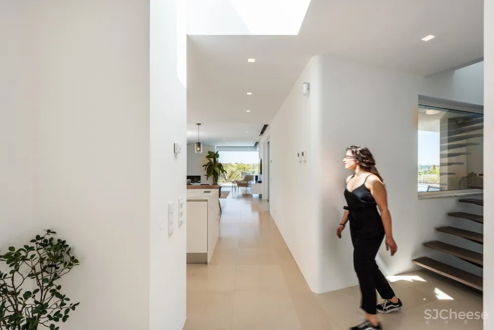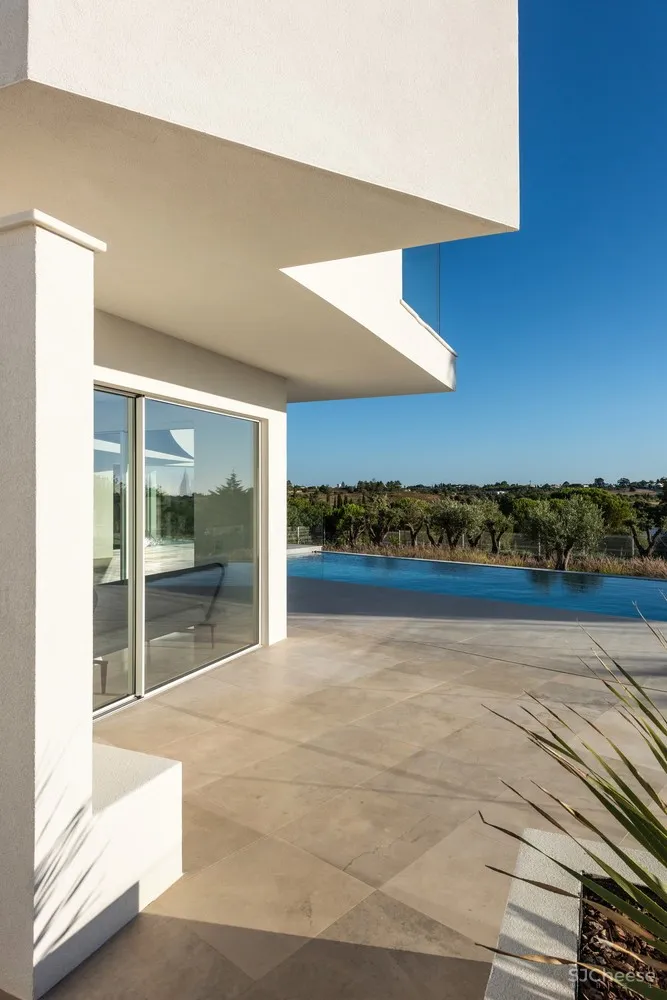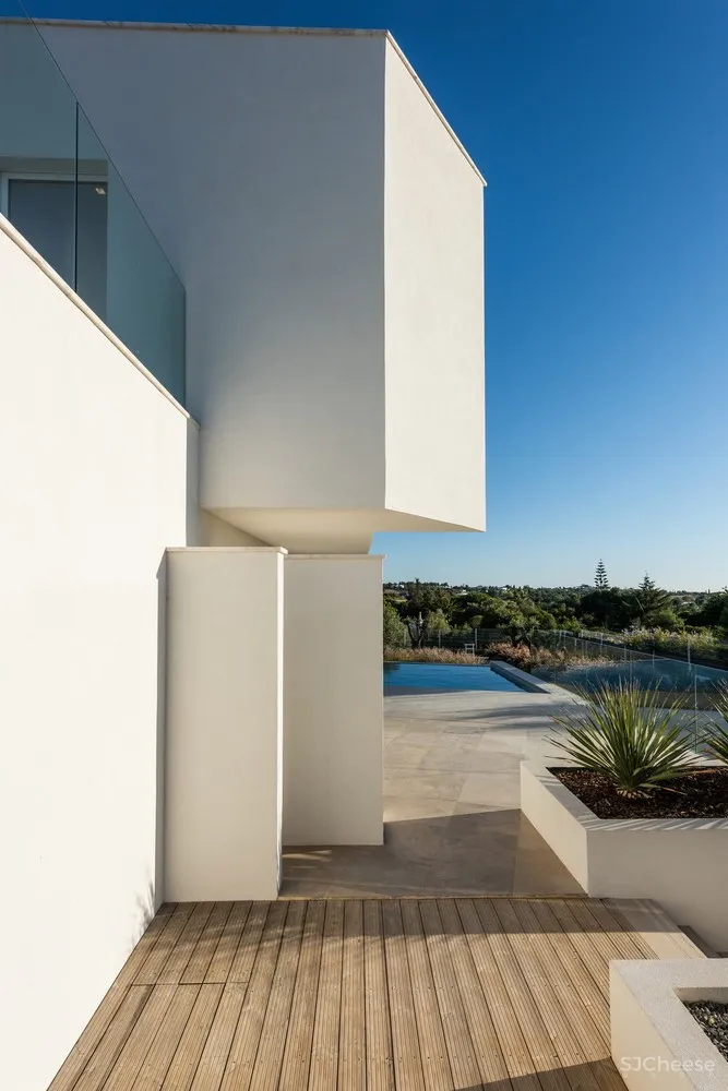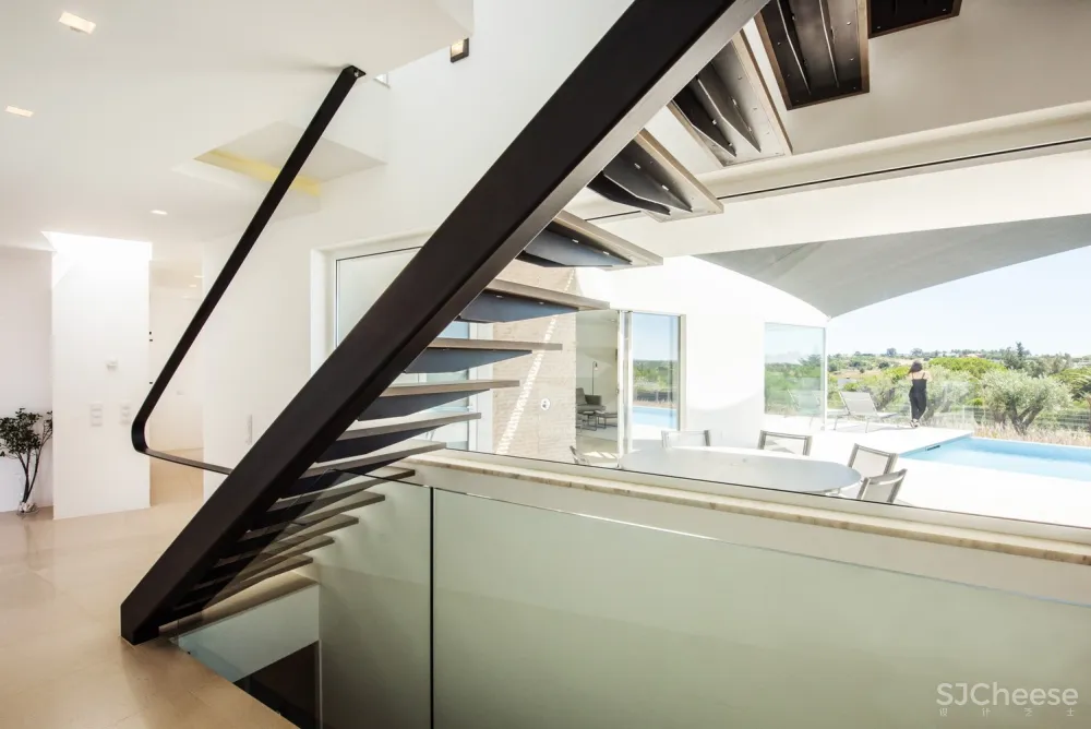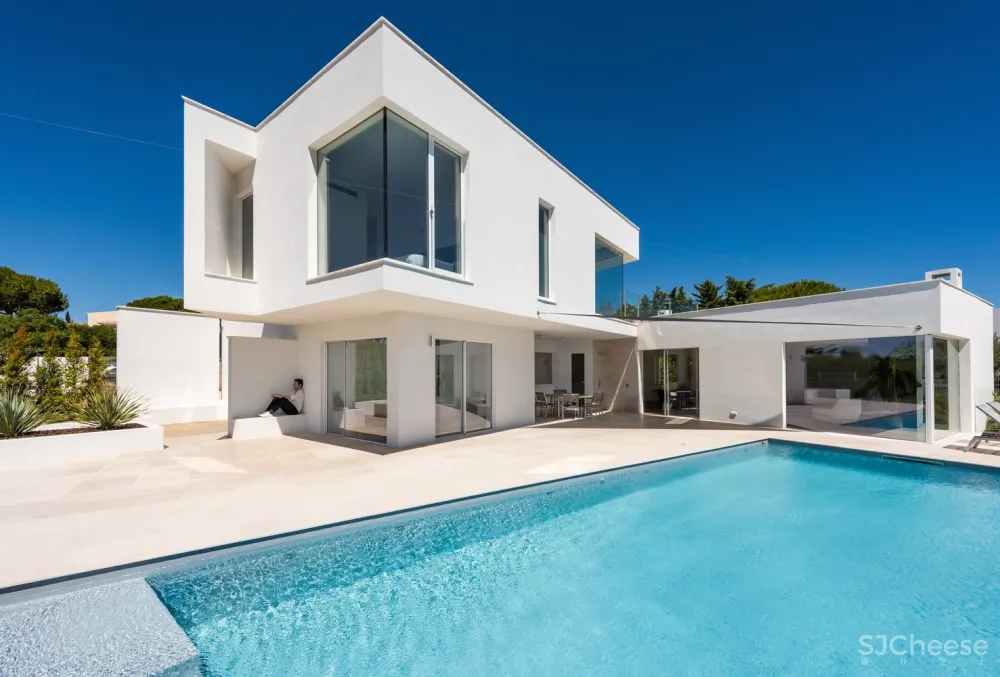 地中海现代主义建筑的真实诠释与葡萄牙立体主义建筑的平衡融合。一个纯粹的白色当代简约主义家庭住宅位于Quinta dos Salicos, Carvoeiro, Algarve(葡萄牙)。基于自然有机的布局设计,建筑的主要形状(梯形)遵循地块本身的形状,在室内外空间(自然融合)不断开放的视觉和物理关系中,引导不同的立面获得最高效、阳光和宜人的景观。