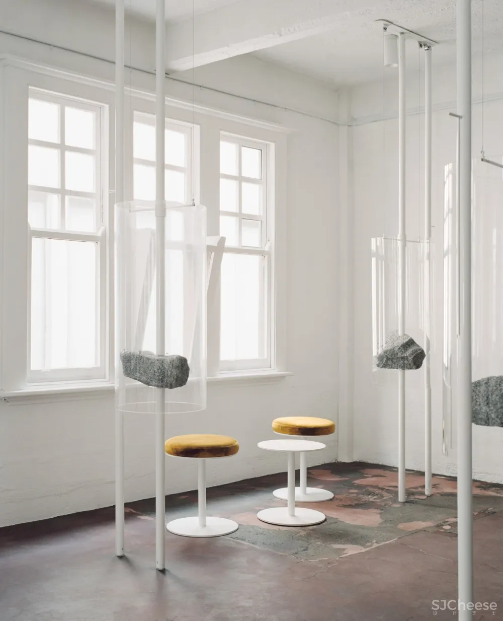 斯坦普顿说,陈列柜的位置是为了潜意识地提醒顾客,在惠廷用来制作首饰的珍贵宝石形成背后的地质和宇宙学原理。 “漂浮巨石的宇宙学排列很明显是对占星术的一种参照,同时是有机的和隐藏的秩序,”斯坦普顿继续说。“这个订单让Cushla的顾客可以在陈列室里闲逛,欣赏她的作品,希望潜意识里能想起史前岩石上的宝石的珍贵。”