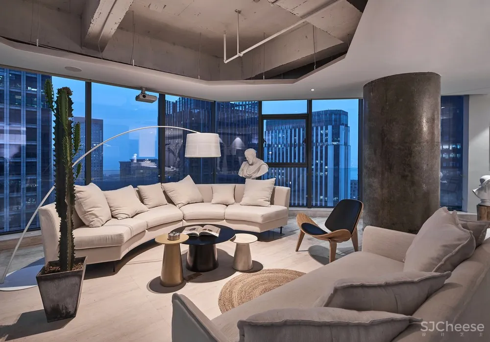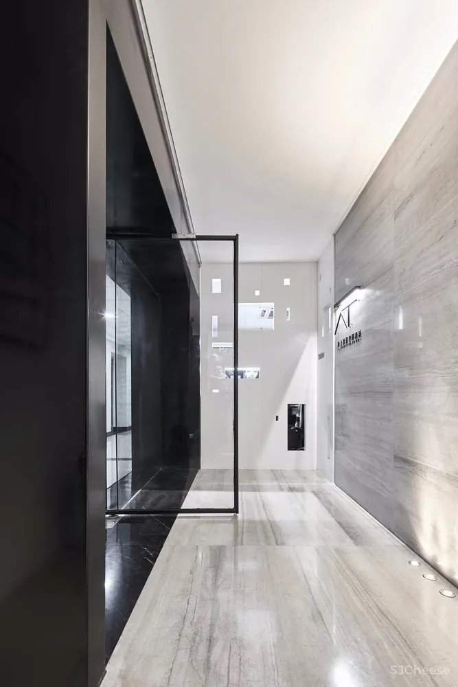 空间设计的本质是为了让人享受当下,享受生活、办公。我们从这一点出发,围绕着自然、家、建筑元素而设计。采用极简的设计手法阐释空间的美学含义,整个内部空间互相关联,以黑白灰为主色调,材料选用大山中运来的大理石,俨然像是一片隐藏在城市中的森林。
