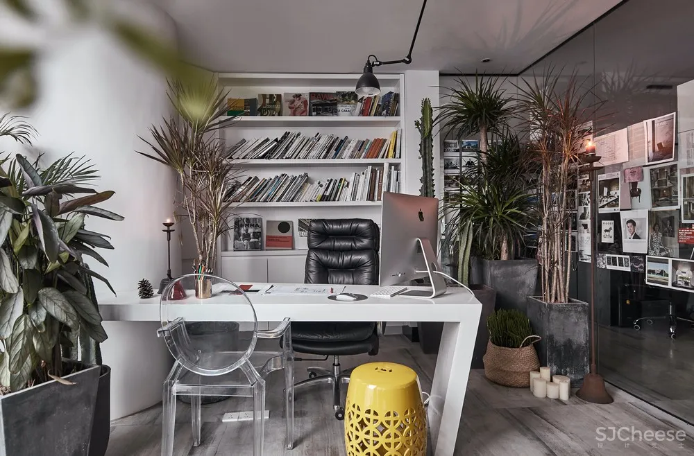 总监办公室满是艺术气息,兼具视觉与功能性。绿植、书籍、装饰画表达对设计的热爱与美好追求。当阳光洒进室内,一杯咖啡,一个靠枕,轻松的氛围立马抹去工作上的疲惫之感。