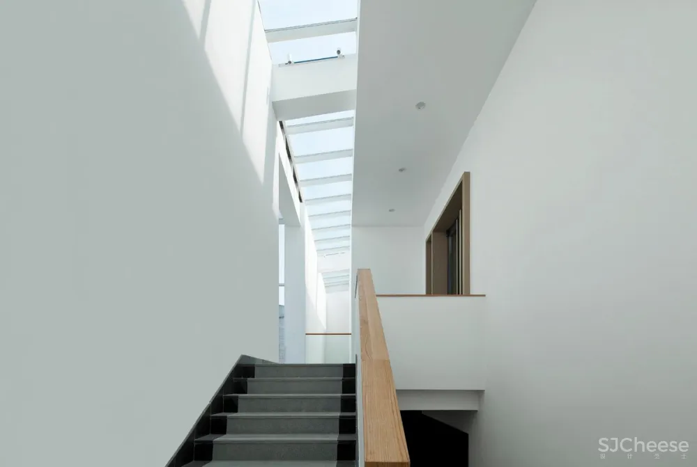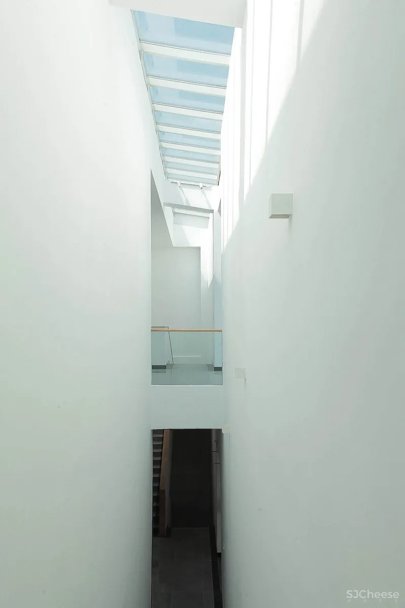 自然光也是这个建筑在设计中着重考虑的内容。自然光随着时间不断的变化,为空间中融入了时间的内容。这个建筑中,光线的设计既是物理性的,也是感知性的。我们希望通过不同自然光在建筑中的处理,一方面切实的解决建筑中人员使用的需要,另一方面,我们也希望伴随着建筑中光线的变化,唤起居住在这个建筑中的人们对于时光的感知。当人们行走在洒满阳光的楼梯上或是休憩在明亮的中庭中的时候,那种建筑独有的时空感便自然的呈现出来。